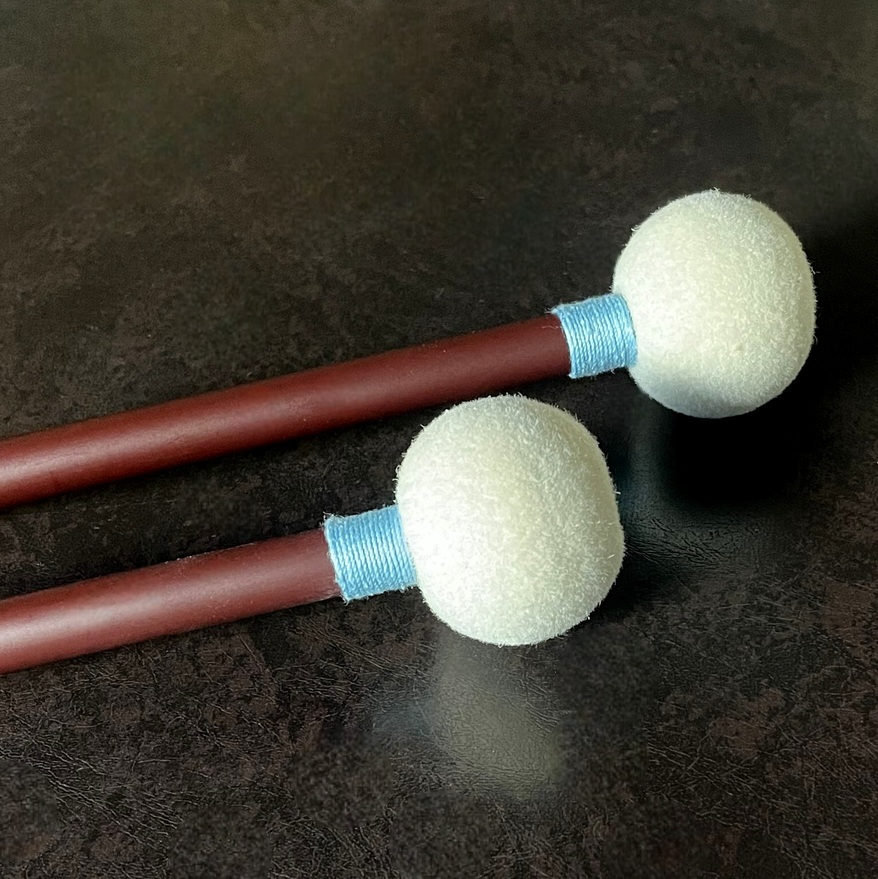 Bachモデル(ハードフェルトをシャフトに直接接着したモデル)をアップデートしました。頭部を球形に近いバレル形状に変更し、対応できるレパートリーの幅も広がりました。録音時の扱いやすさにも定評があり、スタジオやホールでの収録シーンにおいても手元に置いておきたい「実務モデル」です。頭部直径:約35mm、頭部高さ:約30mm、柄長は約365mm、重量は、グリップチューブを除いた状態で約27~30gです。